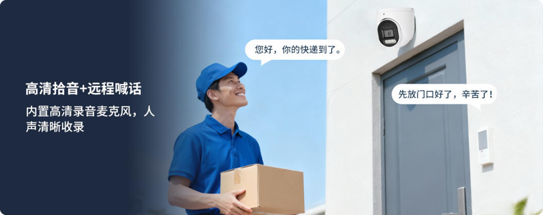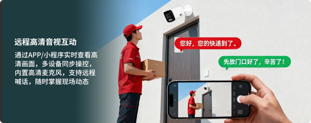 通过APP/小程序可实时查看高清画面,支持多设备同步操控,打破空间限制,随时掌握现场动态。高清远程喊话内置高清录音麦克风,人声清晰收录。