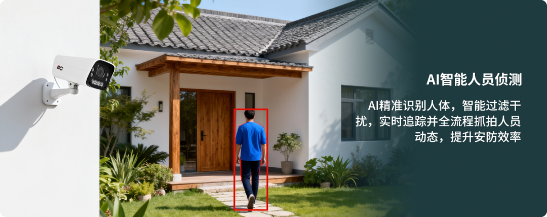 基于AI算法精准识别人体轮廓,智能过滤动物、飞虫等干扰源,降低误报率,提升安防效率。AI移动侦测实时感知,动态捕捉并拍摄人员、车辆等活动动态,支持全流程追踪抓拍。