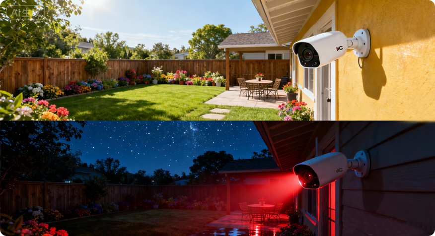支持红外光+白光灯混合补光,可根据亮度自动切换补光模式。